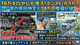 16万km走行の日産セレナで発生したエンストとカラカラ音。ディーラー整備とAI診断を駆使して辿り着いた意外な原因とは?34.5万円かけた整備内容と費用、劇的な改善結果を全公開。多走行車を長く乗り続けたいオーナー必見のログです。