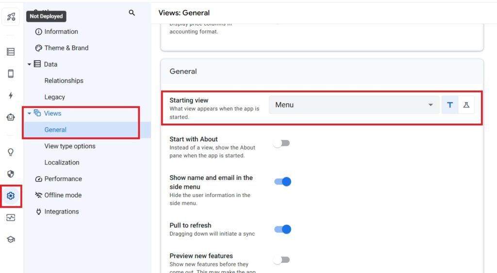 ・画面中央 Starting view→Menuに設定