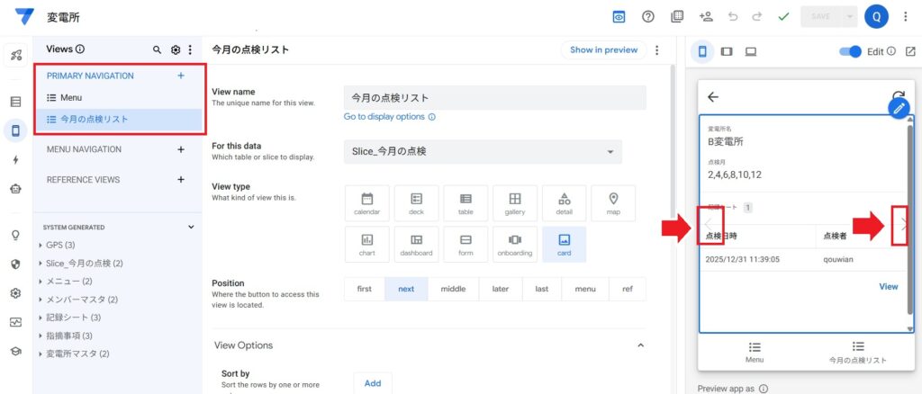 ・スマホマーク(左側)をタップ→Primary Navigationを起動→今月の点検リストを追加