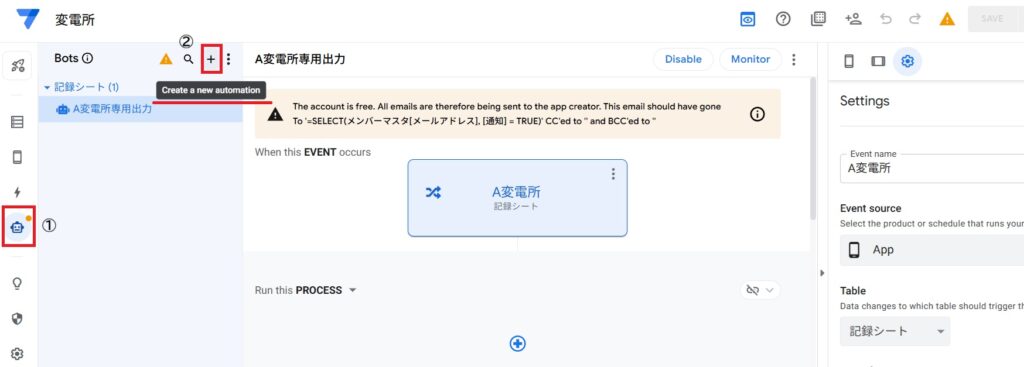 2. 【BOT設定】A変電所専用のイベント作成