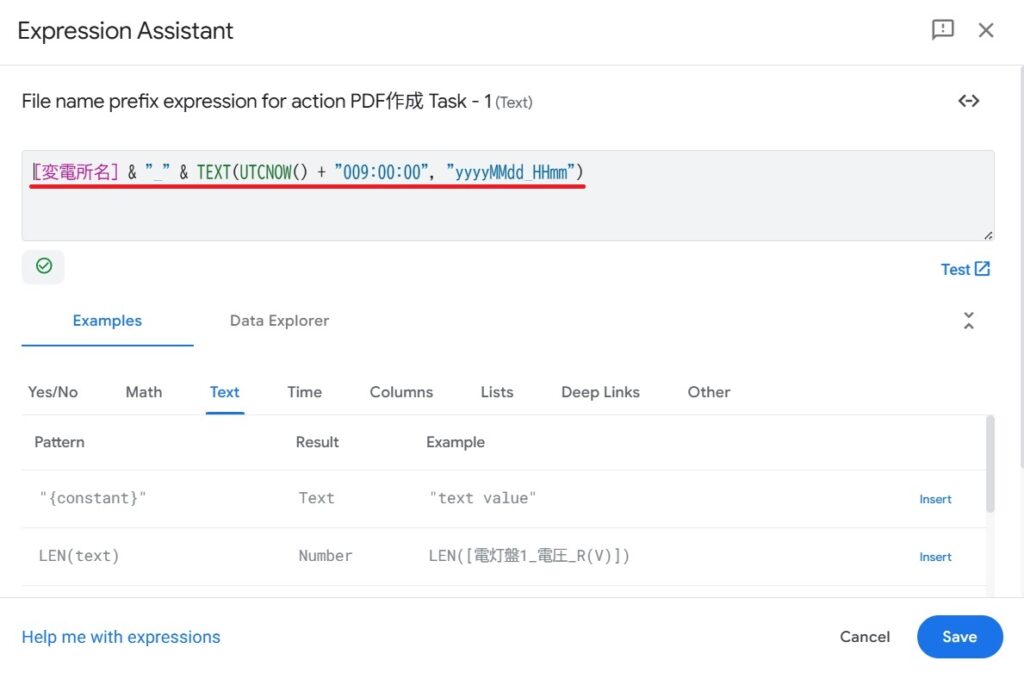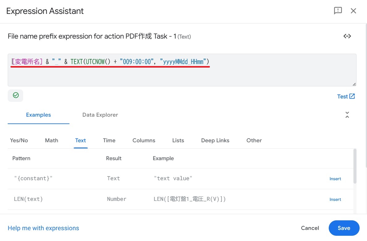 ・左側の説明 File Folder Path 日本時刻で表示したいため上記の式を書く
